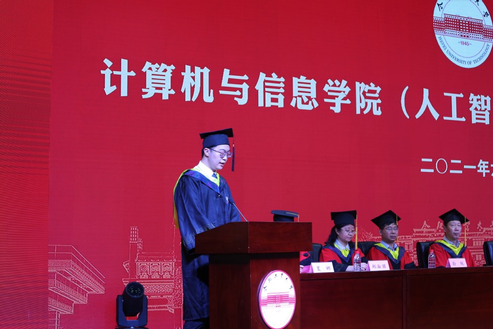 2017级计算机科学与技术专业本科生刘江山同学代表全体毕业生表达了对母校和老师的依依惜别之情,感恩学校、亚洲色吧、老师的教育和支持,并承诺将以自己的实际行动,传承发扬计算机学子“亚洲色吧、荣誉、责任”之精神,不忘初心,砥砺前行,弘扬新时代大学生的社会正能量。