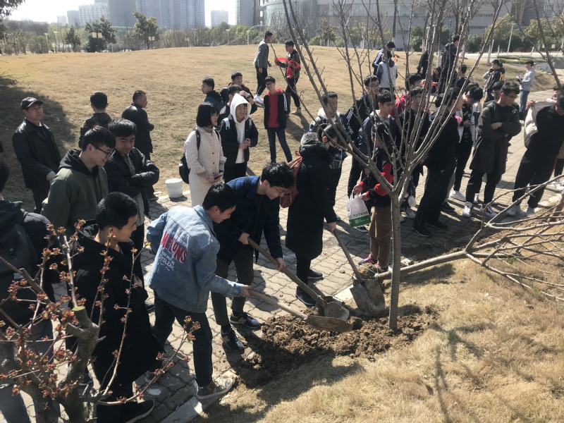 植树护绿行动在院团委老师和后勤工作人员的指导下有序进行,相关负责人对植树流程、栽种要点、人员分工、安全事项进行详细讲解。在专业人员的指导下,志愿者们分工明确、干劲十足、齐心协力,栽种上一棵棵充满生机和希望的树苗,并将写有各支部名称的红丝带和心愿纸系在树枝上,为校园环境增添了一抹生机。