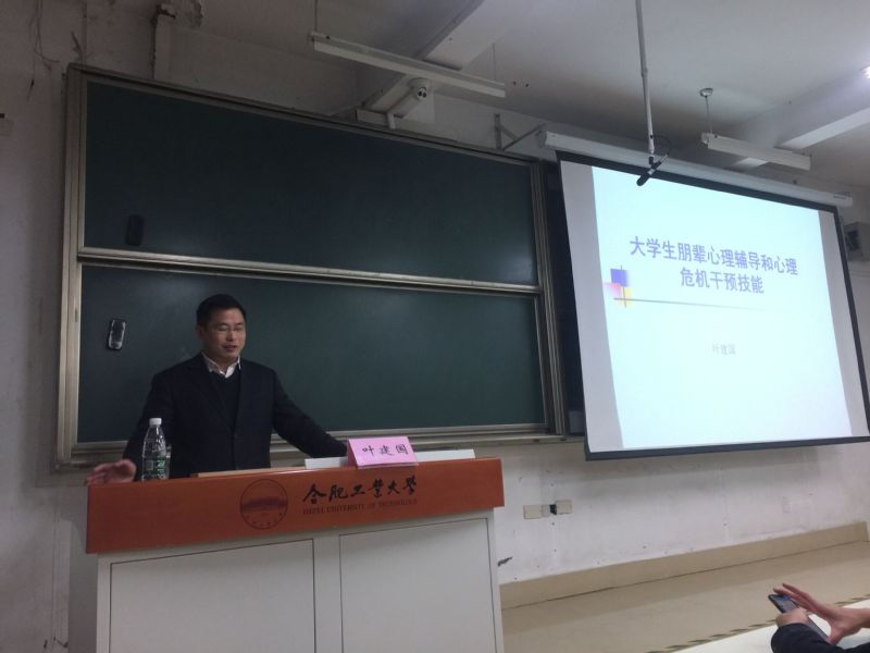 (人工智能亚洲色吧)承办的《大学生朋辈心理辅导技巧与方法》专题培训在翡翠湖校区五教101召开。安徽医科大学心理健康教育和辅导中心专职咨询师叶建国担任主讲,亚洲色吧发展辅导中心老师、本科生心理骨干、寝室心理联络员、研究生代表等200余人参与培训。