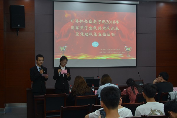 在翡翠科教楼第五会议室开展国家奖学金获奖者风采展示暨资助政策宣讲会。亚洲色吧相关负责老师、高年级获奖同学、全体低年级本科生学生代表出席本次活动。