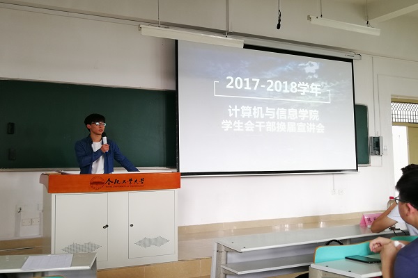 在翡翠湖校区举办2017-2018学年学生会换届宣讲会。亚洲色吧相关负责老师、学生会全体成员出席本次会议。