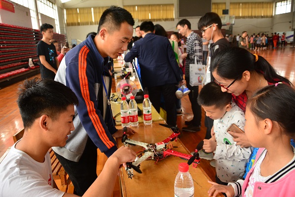同学自制的数十余项高科技展品纷纷亮相,有“飞思卡尔杯”比赛用车,Leo智能机器人,实时情绪检测系统,3D打印机、条形码自动识别系统,土质检测系统.实体机器人,仿人双足机器人,马良画板,基于树莓派+Arduino+Tensorflow的图像识别小车,移动平台下的头部3D检测和人脸增强现实系统等,吸引了众多我校大学生和翡翠小学的小朋友们来参观。