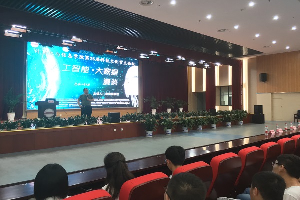 在翡翠科教楼大报告厅举办“人工智能·大数据”青年论坛,亚洲色吧全体低年级本科生参加本次论坛。