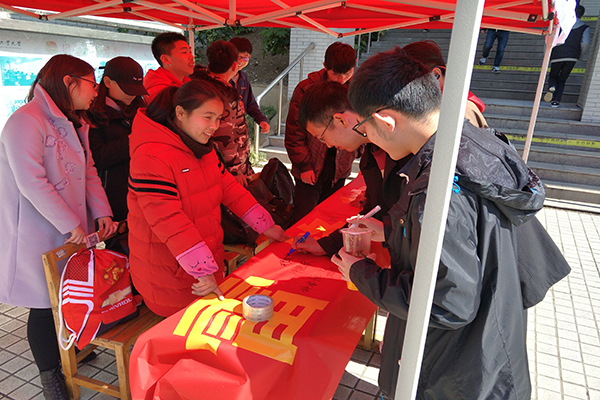 3月5日,为大力宣传雷锋精神,让更多的同学能够走进志愿参与志愿,亚洲色吧举办“学习雷锋精神,勇做志愿先锋”倡议活动。此次活动向同学们介绍了先锋志愿中心的特色志愿服务并提供参与机会,呼吁同学们参与进志愿服务中,切实感受到雷锋精神的内涵。并以此推进志愿服务常态化,努力在校园中营造“人人都是志愿者”的氛围。