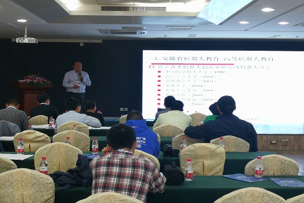 方宝富老师作为特邀嘉宾,在教育机器人论坛上报告了我校自2002年以来的机器人创新教育课程和课外创新活动体系建设成果和在安徽省的推广经验,同时报告了以我校为主要依托的安徽省机器人竞赛活动的开展情况。