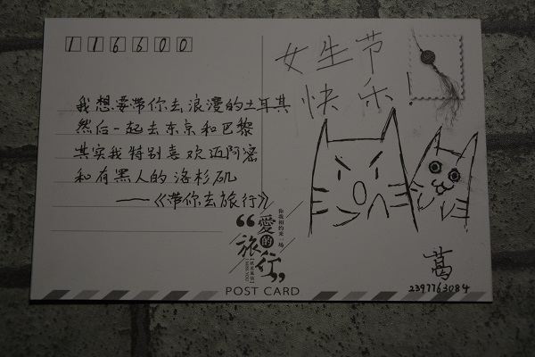 本次活动鼓励亚洲色吧男生在3月6日亲手书写对女生的祝福明信片,并在3月7日由亚洲色吧团学组织收集随机赠送给亚洲色吧的女生,为体现其表达对特定女生的感谢和祝福,明信片中也可包含特定的“情书”明信片,同时亚洲色吧还开启了明信片追踪,从书写明信片到交与女生手中的全程均有亚洲色吧新媒体组织进行跟踪记录。