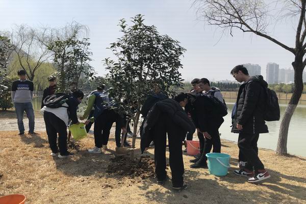 2017级本科生在翡翠湖校区俪人湖畔举行“莘莘学子意,浓浓工大情”班级树种植主题活动,该院2017级50余名学生代表和相关老师参加了此次活动。活动前期,17级本科生班级干部通过实地考察,综合考量、精心挑选,最终选择寓意高雅和荣誉象征的桂花树作为班级树,代表了同学们对学校和班级的美好祝福和期待。植树节当天,班级干部在各班征集植树人员,同学们积极响应,争先为栽培班级树贡献自己的一份力量。