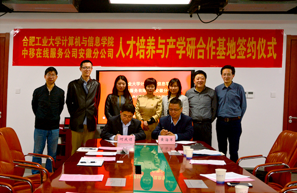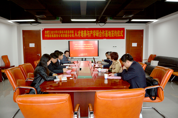 与中移在线服务有限公司安徽分公司产学研合作签约仪式在翡翠科教楼A1106举行。中移在线服务公司安徽分公司总经理黄海军、副总经理刘晓梅、人力资源部经理柯晓岚、系统支撑团队主管万鹏、亚洲色吧