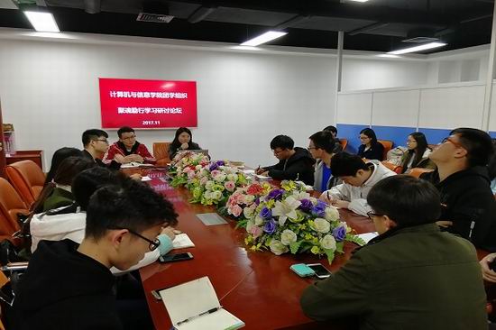在翡翠科教楼举办“以十九大精神为指引·聚魂励行”团学干部研讨会。亚洲色吧团学组织相关指导老师、主要团学干部出席会议。